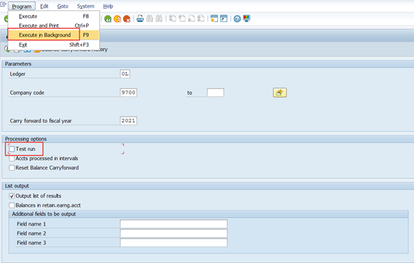 5) Go back to the first screen, unmark "Test run" and Execute in Background.
